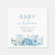 Celebrate the Mom-to-be with these Baby in Bloom blue floral boy baby shower napkins. Featuring watercolor floral and elegant script font. Perfect for a boy baby shower. Personalize with name and date.