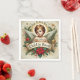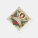 Encircling the angel are lush festive elements, including pine branches, holly leaves, red berries, and a bright red poinsettia, which bring a vibrant holiday spirit to this sacred image. Golden stars and delicate flourishes add a celestial touch to the warm, traditional colors of gold, red, and green, creating a festive, timeless look. Perfect for decoupage, holiday gatherings, or Christmas crafting, these napkins capture the essence of faith and joy during the season. Available in four colors and six sizes, they add elegance and meaning to any Christmas decor project.