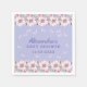 Personnalisez ces serviettes en papier Baby shower papillon, parfaites pour célébrer "un petit papillon doux en route". Le design présente des papillons d'aquarelle rose et lilas flottant de façon capricieuse à travers la surface, complétés par de délicates fleurs roses rousses. L'enchanteresse du jardin donne une ambiance sereine et joyeuse, reflétant l'excitation de la future maman. Contre un arrière - plan bleu poussiéreux avec élégante police de caractères blancs, l'esthétique féminine et élégante de ces serviettes ajoutera une touche de sophistication à votre Fête du Baby shower aux papillons floraux, déjeuner ou pique-nique.