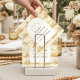 Un doux design de safari de style conte de fée mettant en vedette de gentils animaux de bébé aquarellés, notamment des lions, des girafes et des éléphants, entourés de verdure de jungle douce et de détails botaniques délicats. La palette neutre chaude de crème, d'or miel et d'olive douce crée une esthétique intemporelle inspirée de la nature, tandis que la disposition élégante en arc laisse un bel espace pour les détails personnalisés de l'événement.
