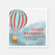Serviette en papier pour une baby shower représentant un adorable ourson dans une montgolfière volant au-dessus des nuages décrivant le voyage pour le bébé à venir.