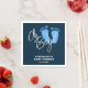 Les serviettes de baby shower de ce garçon sont décorées avec Oh Baby dans la typographie de script moderne et les pieds de bébé d'aquarelle peinte à la main en bleu pastel sur un arrière - plan bleu marine foncé. Facile à personnaliser. Aquarelle originale © Michele Davies.