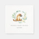 Personnalisez ces adorables serviettes de baby shower à thème pour bébé de bush avec la mère pour être le nom et la date de douche, sous un platypus d'aquarelle cheeky assis dans une couronne de feuilles d'eucalyptus verts. Conçu pour correspondre à notre collection d'invitation pour le baby shower Bush Babies.