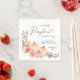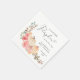 Serviettes élégantes pour votre douche bébé fille avec "un petit citrouille sucré est en route" dans une simple typographie grise et un script avec un swash coeur, et un arrangement aquarelle de citrouilles pastel rose, pêche et crème, floraux et verdure.