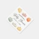 Ajoutez une touche festive à votre fête avec ces serviettes de baby shower sans distinction de sexe qui présentent des citrouilles d'aquarelle dans des teintes automnales douces d'orange, jaune, vert sauge, crème et rose poussiéreux. Le "Baby shower" est affiché dans un élégant script manuscrit au centre, avec le nom et la date de la douche de la mère ci-dessous. Les citrouilles mettent l’accent sur le haut et le bas du design, créant un look saisonnier chaleureux, parfait pour les baby showers d’automne.
