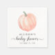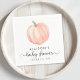Ces serviettes de baby shower minimes, neutres pour les femmes, ont une couleur orange d'un citrouille mignon, un "baby shower" dans un script assez élégant, et le nom et la date de douche de la mère-à-être dans la typographie moderne et manuscrite.