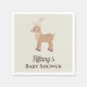 Un cerf mignon a un arrière - plan d'argent sur le devant de la serviette. Le nom est écrit sur le devant en lettres brunes cursives. Sous le nom est "Baby shower" écrit en brun. Clipart animale forestière : www.laboutiquedeicolori.com