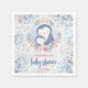 Baby shower serviettes avec mère et bébé pingouin sur un arrière - plan bleu et faux parties scintillant arrosent. Personnalisez avec un nom.