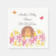Des serviettes de baby shower personnalisées avec un adorable hérisson caché dans un pré de fleurs roses et jaunes.