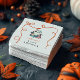 Célébrez votre petit boo douillet avec ce design de baby shower d'Halloween courbé avec un doux fantôme pastel, détails de cottagecore, maïs bonbon, tarte citrouille, et une bordure en ruban cousu. Idéal pour une fête d'automne rustique au charme fantaisiste.