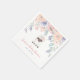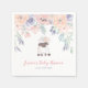 Les serviettes en papier baby shower personnalisées pour agneau de fille sont pourpres et roses fleurs avec une police calligraphique.