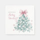 Célébrez l'arrivée de votre petite fille avec cette charmante serviette de baby shower sur le thème de l'hiver. Doté d'un sapin de Noël turquoise orné d'un arc rose vif délicat et entouré de flocons de neige pastel, cet élégant design allie charme festif et douceur et coquette. Parfait pour créer un baby shower d'hiver mémorable avec une sensation fantaisiste, mais sophistiquée.