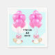 De mignonnes serviettes de baby shower jumelles avec des ballons roses et des jumelles originales "Twice as Nice" citent.