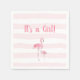 Adorable mère et bébé flamants roses sur une serviette rayée couleur rose et blanc à la mode avec "c'est une fille !" texte. Super mignon.