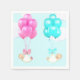 Serviettes de baby shower créatives avec douces jumelles et filles nouveau-nés et ballons roses et bleus.