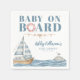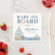 Cette serviette de baby shower au thème nautique présente au centre un voilier bleu et blanc classique flottant sur l'eau bleue avec un anneau rouge et des détails subtils de corde pour une charmante touche maritime. En haut, "Baby On Board" est présenté dans un mélange de délicat script manuscrit et de polices serif classiques, le tout dans les tons bleus pour un look audacieux et intemporel. Le reste du texte complète le design dans le même style élégant. Parfait pour un baby shower ou une fête inspirée de l'océan, cette serviette ajoute un détail coordonné et élégant à votre programme de fête. Customisez le texte, les polices et les couleurs pour correspondre à votre événement !