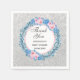 Une serviette "merci" féminine et féminine pour un baby shower. Cette jolie serviette présente une parties scintillant argentée brillant arrière - plan, un élégant texte gris foncé, et une couronne de rose floral rose et bleu d'aquarelle. Personnalisez en ajoutant votre propre texte, nom et date de baby shower.