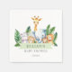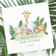 Ce baby shower d'aventure safari présente de charmants animaux de la jungle, dont un hippo, une girafe, un éléphant, un lion, un singe et un tigre. Parfait pour célébrer l'arrivée d'un nouveau lot de joie. Les couleurs vives et les illustrations d'animaux mignons créent une atmosphère fantaisiste et ludique, donnant le ton pour un événement amusant et mémorable. Un choix qui plaira à tous les baby showers à thème de jungle.