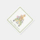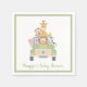 Cette serviette de baby shower sans distinction de genre présente une jolie illustration de bébés animaux (lion, zèbre, éléphant, singe et girafe) entassés dans un véhicule safari, ainsi que le nom et le "Baby shower" de la mère dans un script vert coordonné.