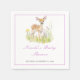 Jolie serviette baby shower avec un adorable cerf et des fleurs violettes et jaunes. Parfait pour un baby shower de printemps ou d'été. Les mots peuvent être changés en fonction de vos propres détails ou exigences