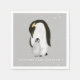 Thème baby shower d'hiver avec illustration de pingouin bébé et mama entouré de neige sur un arrière - plan gris.
