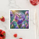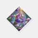 Un colibri vibrant se baignant dans une iris pourpre fleurie entourée de gouttelettes d'eau qui brillent au soleil
