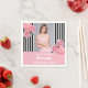 Élégante, classique, glamour et de style féminin pour une soirée de remise des diplômes 2022. Classic et chic rayures verticales noir et blanc fin. Fond rose. Décoré de fleurs roses, de pivoines et de roses. Modèles pour un nom et une photo. Le nom est écrit avec un script de style écrit à la main. Avec le texte : félicitations et diplômé 2019. Fille et élégant !