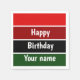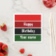 Un motif rayé horizontal rouge et vert et le texte : Joyeux anniversaire. Vous pouvez cliquer sur personnaliser et modifier le texte. Écrivez deux mots en une seule ligne.