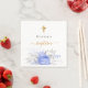 Serviette En Papier Baptême bleu floral blanc élégant nom script garço