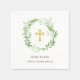 Ces élégantes serviettes de baptême botanique sont ornées d'une couronne verte de feuilles entourant une fausse croix d'or, sur un arrière - plan blanc propre. Nous avons utilisé l'art de LABFcreations.
