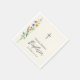 Cette serviette en papier Baptême fleurie rustique présente des fleurs sauvages et une croix sur un arrière - plan crème tendre. Facile à personnaliser. Aquarelle originale © Michele Davies.