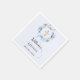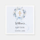 Complete your table setting with these elegant blue baptism napkins. The design features a delicate blue watercolor floral wreath surrounding a gold ornate cross, accented by a graceful blue ribbon. These personalized napkins add a sophisticated and feminine touch to a young boy's baptism.