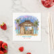 Les serviettes en papier pour cocktails sur le thème Tiki présentent un bar Tiki aquarellé sur la plage sous la lune et les étoiles avec des palmiers, des guirlandes lumineuses, des torches Tiki et un message « Aloha ». Des cocktails tropicaux, un ananas, une hibiscus et des feuilles de palmier, un surf et un perroquet dans un chapeau de pirate ornent la zone du bar. Idéal pour une réception de mariage, une fête de couple, une fête de fiançailles et des célébrations d'anniversaire avec des thèmes de plage, Tiki et luau. Œuvre de KL Stock