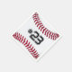 Gros plan extrême d'un baseball blanc avec couture rouge et nombre. Le nombre est modifiable.