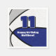 Cette serviette de basket-ball à thème pour un anniversaire de basket-ball ou une fête d'équipe présente l'image d'un basket-ball qui a alternativement des panneaux bleus, blancs et gris - customiser le texte en bleu et blanc - par katz_d_zynes