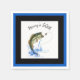 Sauter la grosse basse bouche après la pêche à la mouche leurre d'un splash d'eau bleue. Bague noire intérieure et bague bleue extérieure qui correspond à la couleur de l'eau. Il suffit de modifier le texte avec le nom et l'âge de votre garçon d'anniversaire ! Basse main dessinée par l'artiste ©Tina Hesskew de Fishing Hunting Life.