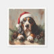 Un adorable art numérique de basset hound dans un style de peinture à l'huile. Le mignon chien chiot porte un chapeau de Père Noël rouge et blanc. Un cadeau d'hiver et de Noël parfait pour les amoureux de les chiens.