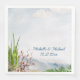 De belles serviettes en papier pour un mariage unique sur le thème de la plage, une douche nuptiale ou un dîner de répétition. Imprimé avec une plage pittoresque et un arrière - plan surf aux accents botaniques doux. Le texte formaté est prêt à être édité avec vos propres détails dans l'éditeur Zazzle facile. Coordonné avec des invitations, et beaucoup d'autres articles dans notre collection de design de Beach Dune Romance. Créé en partie avec une utilisation commerciale licence d'achat d'oeuvres d'Andjelina's Designs.