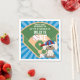 Cette jolie serviette en papier Premier Anniversaire présente un adorable chien de chiot portant un casquette de baseball et prêt à jouer au ballon. L'arrière - plan est un terrain de baseball avec un décor de starburst bleu.