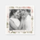 Beau Roses d'aquarelle de Pêche douce avec verdure et photo et nom de couple sur Pastel Peach et serviettes Mariage blanc.