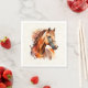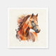 Serviettes en papier avec une belle illustration. Tête de cheval couleur châtaignier et haut du corps. Avec des patchs d'aquarelle derrière.