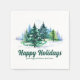 This beautiful custom business holiday party napkin features gorgeous green Christmas trees in a winter landscape above your customized company name and Happy Holidays. Personalized holiday decor for a corporation or family.