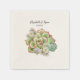 Jolie serviette pour votre mariage d'été de jardin, réunion de famille ou thé de jardin. Fleurs blanches et plantes succulents dans les tons rose, vert et bleu. Parfait pour toutes les occasions, il suffit de personnaliser le texte selon vos besoins.