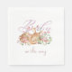 Ces serviettes de baby shower douces et charmantes présentent un thème forestier illustré avec un chevreuil endormi et de belles nuances de rose et de rougeur. Le cerf se repose dans un petit jardin boisé de fleurs roses et de champignons.