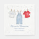Ce design comprend un mignon bébé garçon bleu lunaire, une typographie minimaliste simple, un script de calligraphie design tendance, des jeans bleu denim doux, un t-shirt de bébé garçon, un t-shirt de garçons rouge blanc, une aquarelle simple de vêtements de garçons, un jean bleu rustique du pays, un simple baby shower-fête papier cocktail boissons serviettes, un garçon baby shower de fête fournitures
