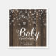 Serviettes en papier baby shower à thème hivernal rustique. Ce design branché comprend des lampes à cordes et des flocons de neige sur un arrière - plan en bois foncé.