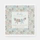 Ces serviettes en papier de Baby shower d'hiver, neutres pour les hommes, présentent de jolies illustrations dessinées à la main de costumes en pyjama de Noël et des animaux peluches sur une ligne de vêtements et un nom et un événement personnalisables. Élégant arrière - plan vert doux.