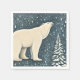 Un design artistique amusant avec un majestueux Ours polaire majestueux qui regarde vers le ciel nocturne de l'Arctique, tandis que de grands flocons de neige blancs et moelleux tombent tout autour de lui.