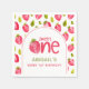 Serviettes de fête d'anniversaire personnalisées à la fraise Berry pour bébé fille en train de tourner UN doux. fraises d'aquarelle, accents floraux feuille et blancs. Berry 1er anniversaire fournitures de fête.