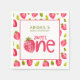 Serviettes de fête d'anniversaire personnalisées à la fraise Berry pour bébé fille en train de tourner UN doux. fraises d'aquarelle, accents floraux feuille et blancs. Berry 1er anniversaire fournitures de fête.